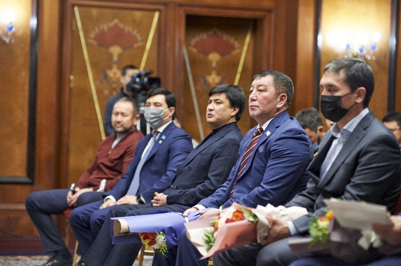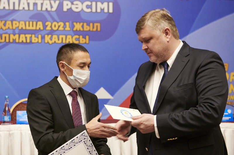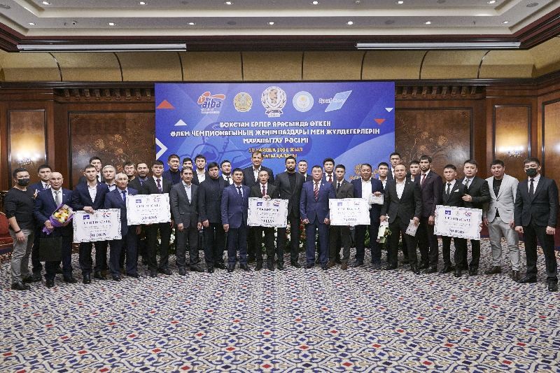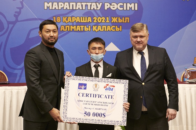 Церемонию награждения провели генеральный секретарь НОК Казахстана Андрей Крюков и президент Казахстанской федерации бокса Кенес Ракишев.