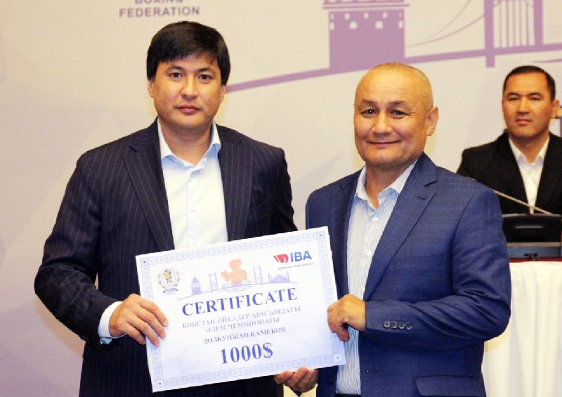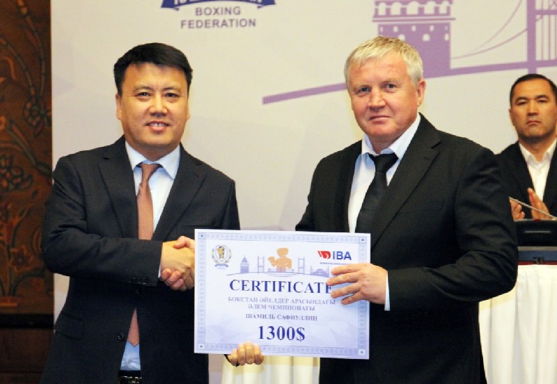 В церемонии награждения приняло участие руководство Казахстанской федерации бокса во главе с ее президентом Кенесом Ракишевым.