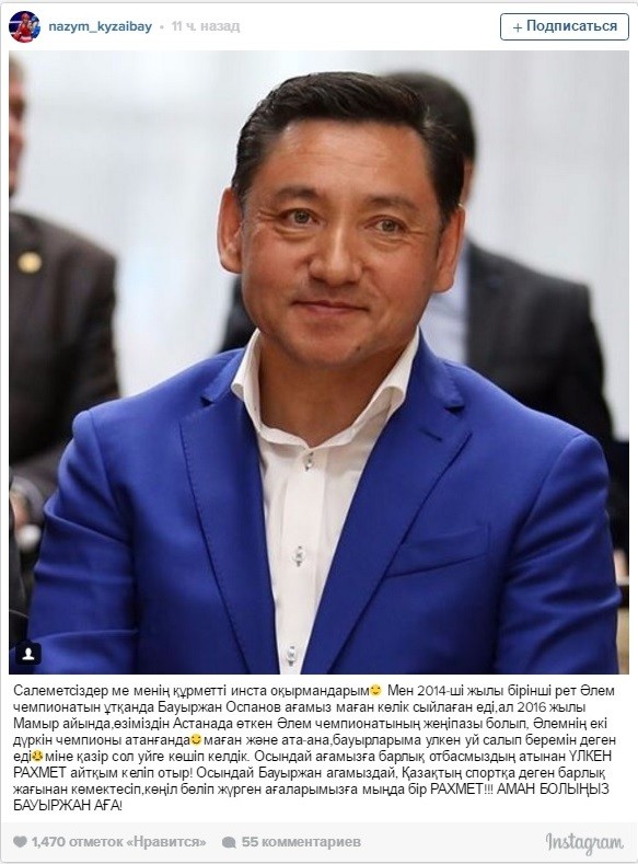 - Это его решение. Парень сам захотел построить свою карьеру в профессионалах, уехал. Сейчас у него есть планы подписать контракт с менеджерами в Америке, и, насколько знаю, Мейрим готовится к своему дебюту на профессиональном ринге.