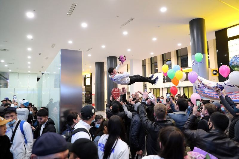 В аэропорту Нур-Султана, несмотря на ранний час, триумфаторов и тренеров ждала большая группа поддержки – родители, друзья, учителя, одноклассники – все, кто болел и верил в победу. Встречать Санжара Ташкенбая пришла его родная столичная школа-гимназия №4. Чествовать Сабыржана Аккалыкова приехали из его родного города, Шахтинска, из Караганды, и однокашники из школы олимпийского резерва имени Мунайтпасова.